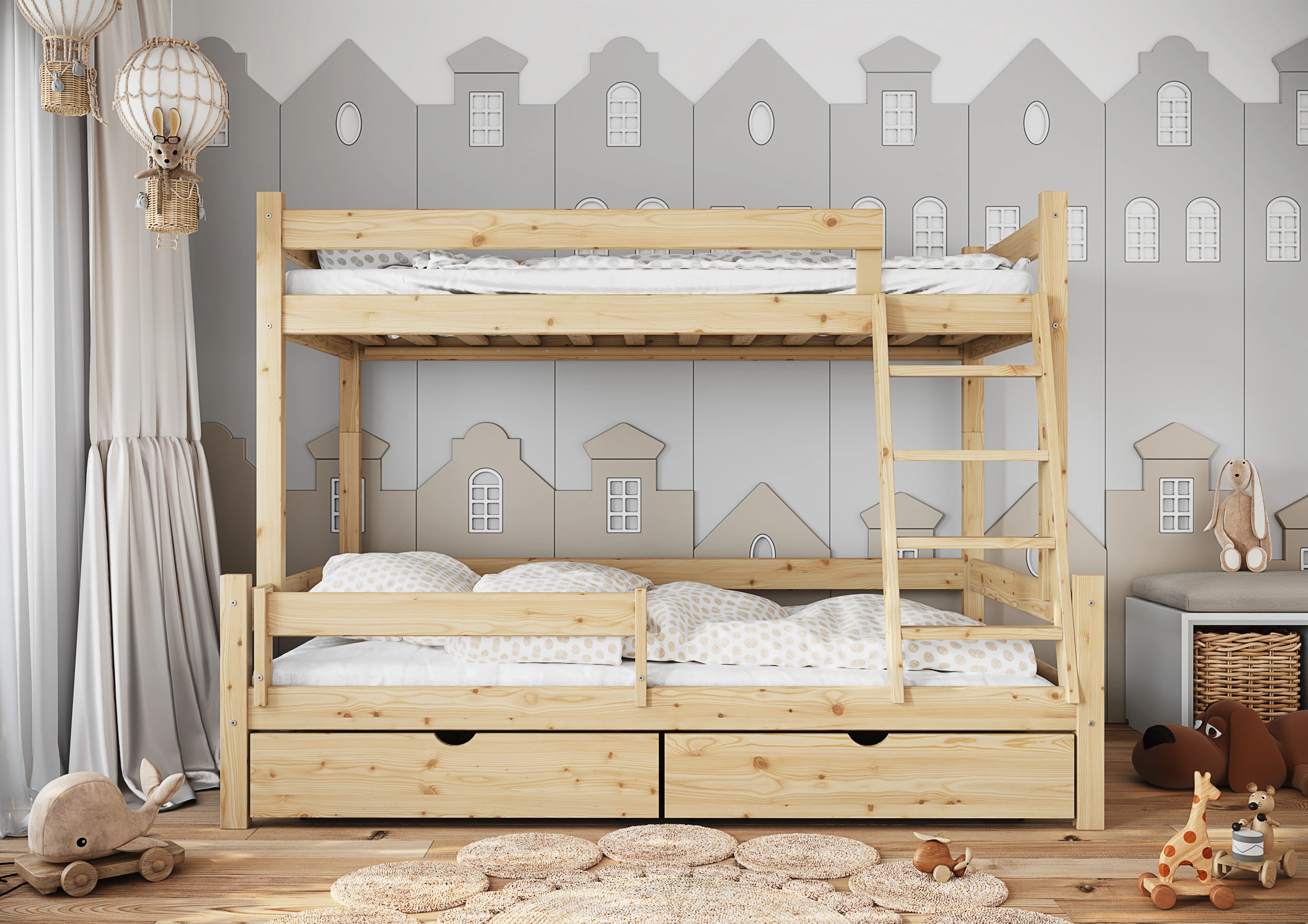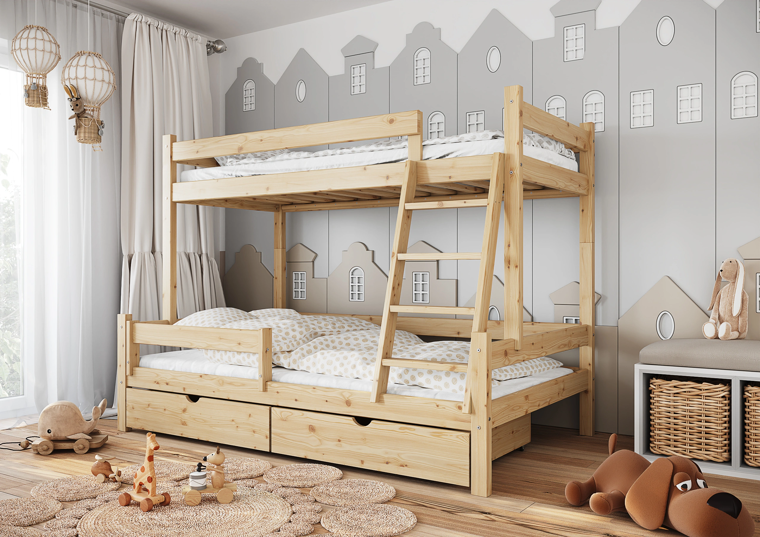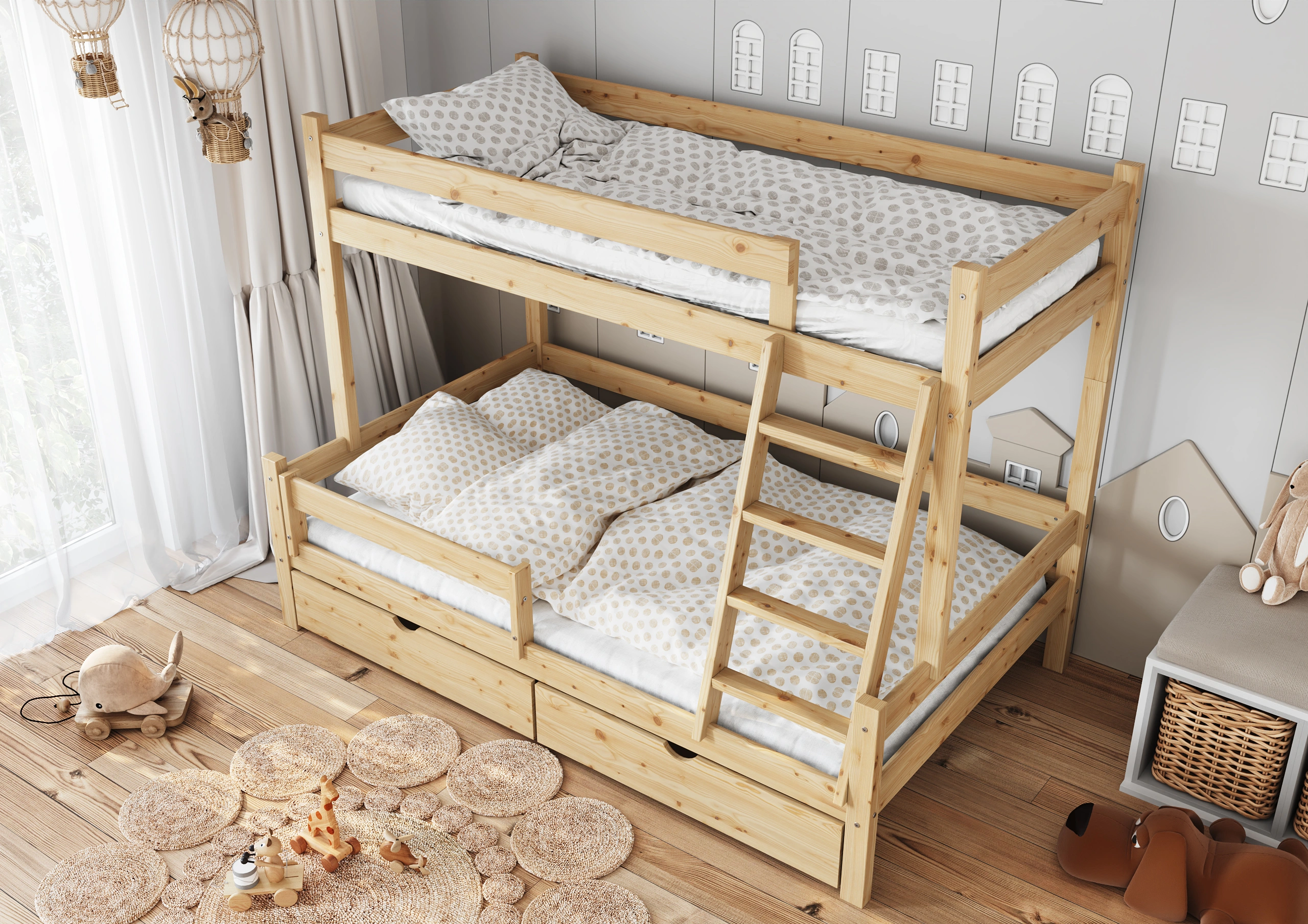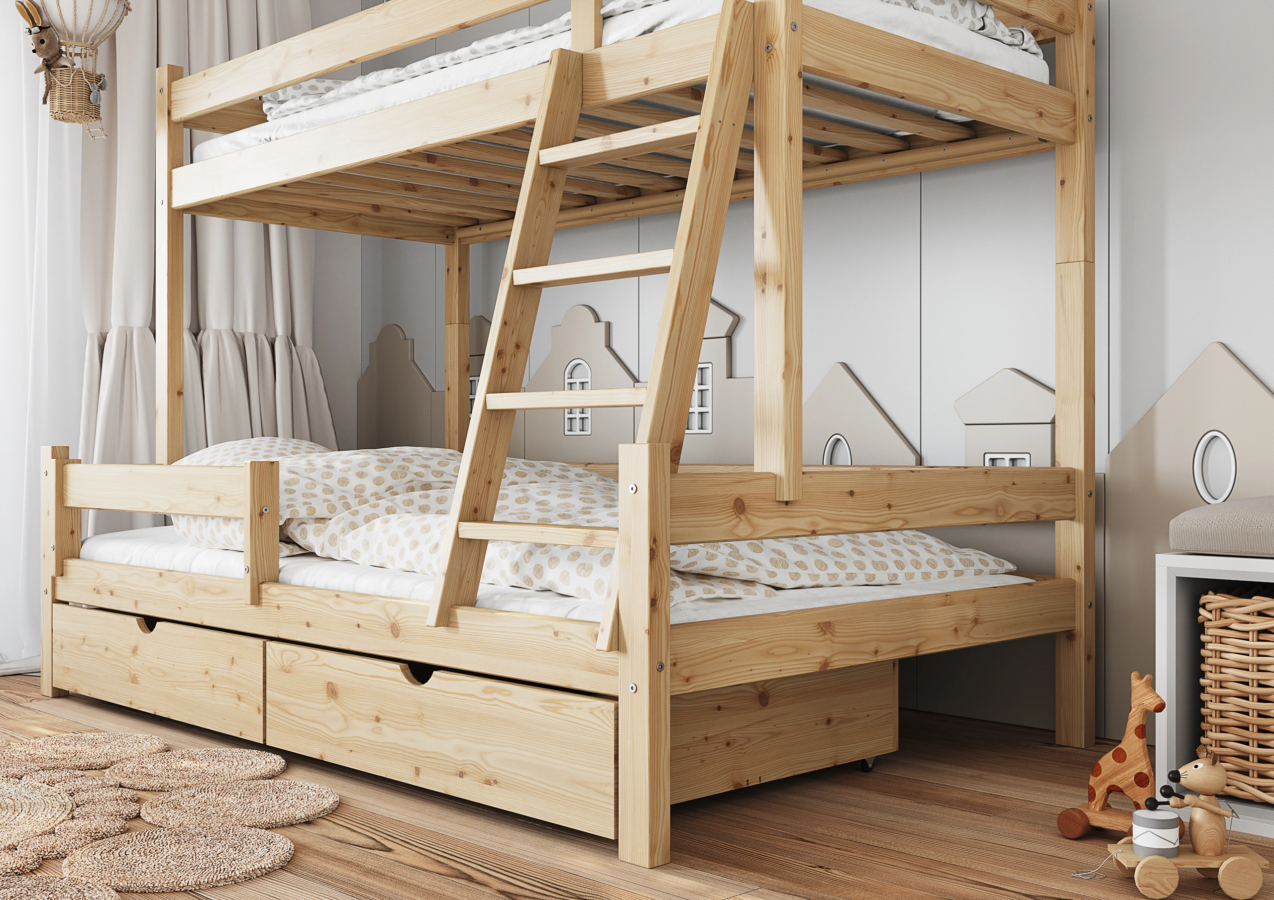 Funkčná a bezpečná poschodová posteľ pre 3 osoby "Iris"