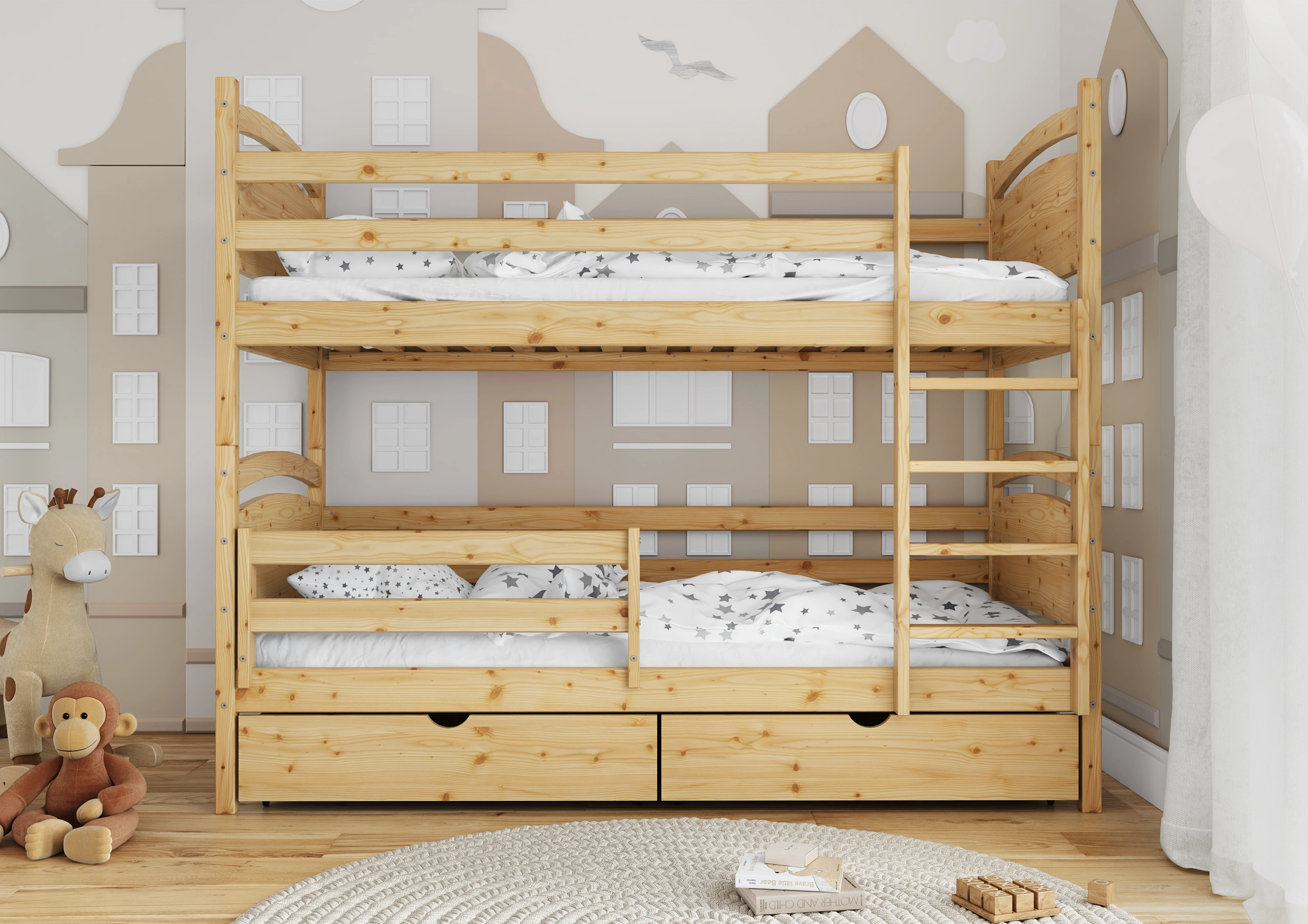 Čo môže byť krajšie ako pokojný spánok dieťaťa? Pokojný spánok dieťaťa v jedinečnej posteli, ktorá sa stane jeho vysnívanou herňou a oddychovou zónou! To všetko poskytuje malým princeznám naša poschodová posteľ Monika, ktorú sme právom vyhlásili za najkrajšiu dámu spomedzi všetkých poschodových postelí v našom obchode. Je to model navrhnutý s výnimočným dôrazom na detail, s jemne zaoblenou opierkou hlavy a nápadnými, robustnými bezpečnostnými zábranami, ktoré chránia dievčatá pred pádom počas spánku.