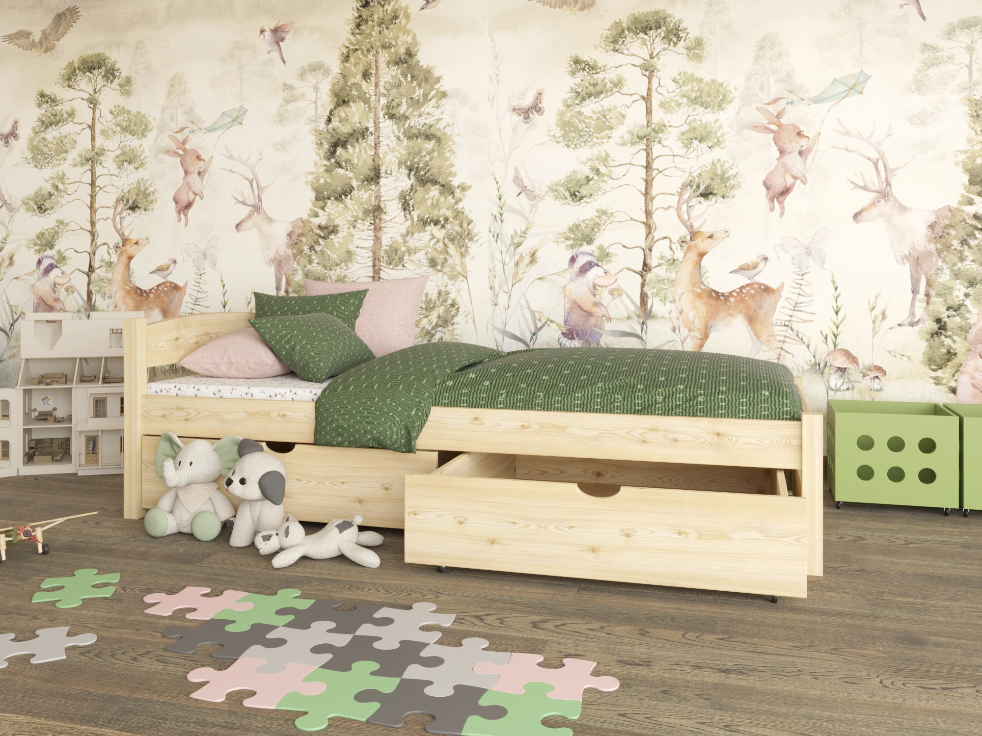 Všetky hrany sú zaoblené a posteľ je navrhnutá s na maximální bezpečnost vašeho dítěte. Všechny prvky jsou pečlivě dokončeny, a dřevo je hladké a příjemné na dotek.